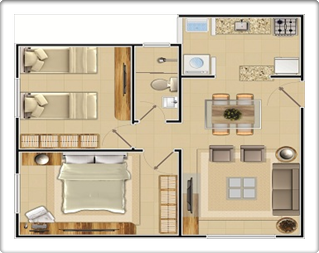 - Apartamento com área de 45m2